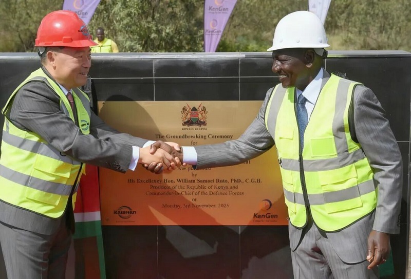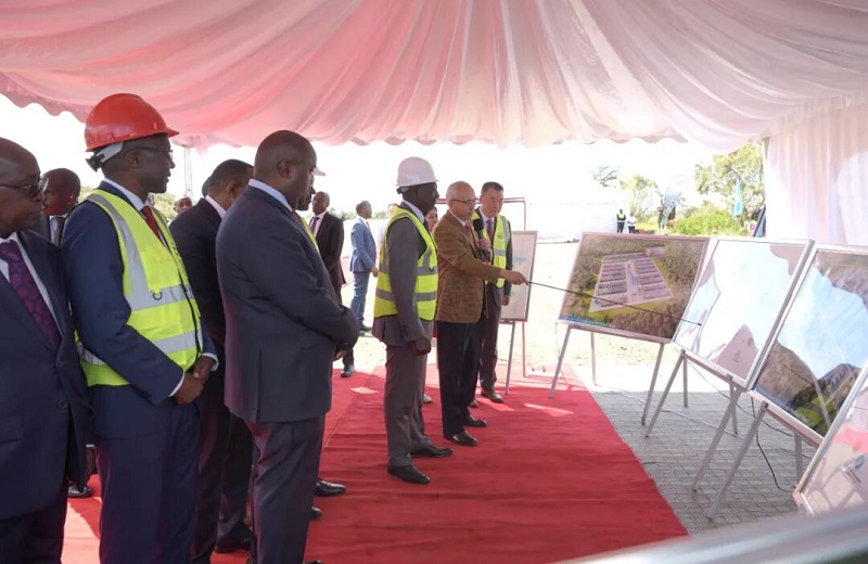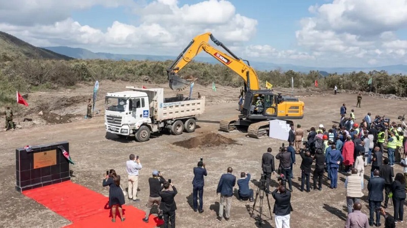 上午九点,肯尼亚共和国总统鲁托阁下搭乘的直升飞机降落在绿色化肥厂建设工地,他与太阳成集团tyc234cc主页控股集团股份有限公司董事长曹克坚首先为项目揭牌,并亲自开动挖掘机,为项目建设挖掘了第一铲土,宣告了肯尼亚有史以来最大的工业项目开工建设。